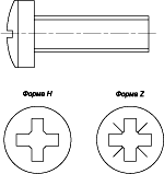 Винт самонарезающий с крестообразным шлицем: форма A (с полупотайной цилиндрической головкой), форма D (с потайной головкой), форма E (с полупотайной головкой)
